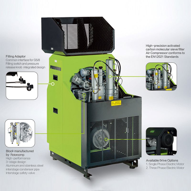 يتميز ضاغط هواء التنفس الثابت بالوزن الخفيف والضاغط المحكم مناسب لأي شخص يحتاج لمصدر هواء تنفس نقي وأمن في التطبيقات المتنقلة. بفضل الأبعاد والتقنية المتقدمة، يعد ضاغط هواء التنفس الثابت الحل المناسب للتشغيل في المحطات البحرية، الغطس، مكافحة الحرائق، على متن السفن، لعبة البنتبول، رياضة الرماية، والمزيد من التطبيقات التي تطلب هواء التنفس النقي لحياة صحية وأمنة.
